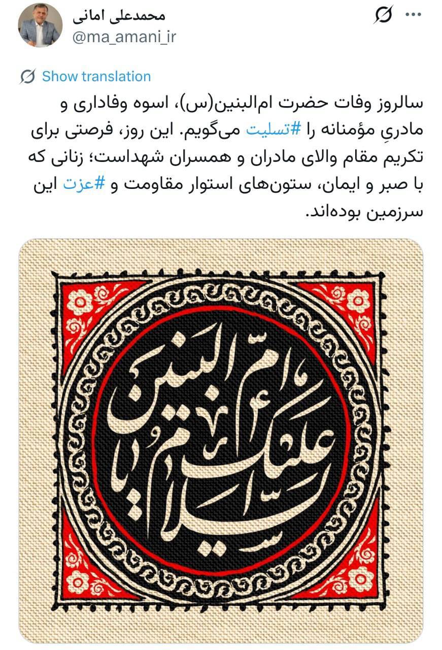 سالروز وفات حضرت امالبنین(س)، اسوه وفاداری و مادریِ مؤمنانه را تسلیت میگویم. این روز، فرصتی برای تکریم مقام والای مادران و همسران شهداست؛ زنانی که با صبر و ایمان، ستونهای استوار مقاومت و عزت این سرزمین بودهاند.