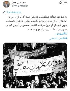 📡۱۷ شهریور یادآور مظلومیت مردمی است که برای آزادی و استقلال ایران در برابر رژیم وابسته پهلوی به خون نشستند. خون شهیدان آن روز، درخت انقلاب اسلامی را آبیاری کرد و مسیر عزت ملت ایران را هموار ساخت