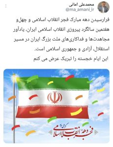 📡فرارسیدن دهه مبارک فجر انقلاب اسلامی و چهلوهفتمین سالگرد پیروزی انقلاب اسلامیفرارسیدن دهه مبارک فجر انقلاب اسلامی و چهلوهفتمین سالگرد پیروزی انقلاب اسلامی ایران، یادآور مجاهدتها و فداکاریهای ملت بزرگ ایران در مسیر استقلال، آزادی و جمهوری اسلامی است.