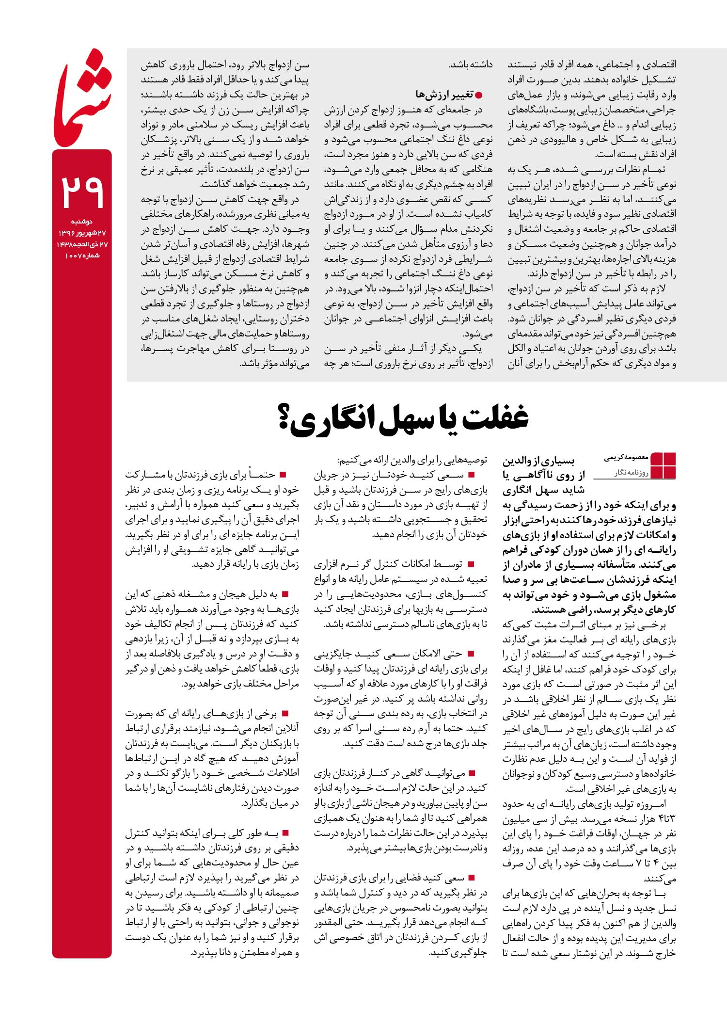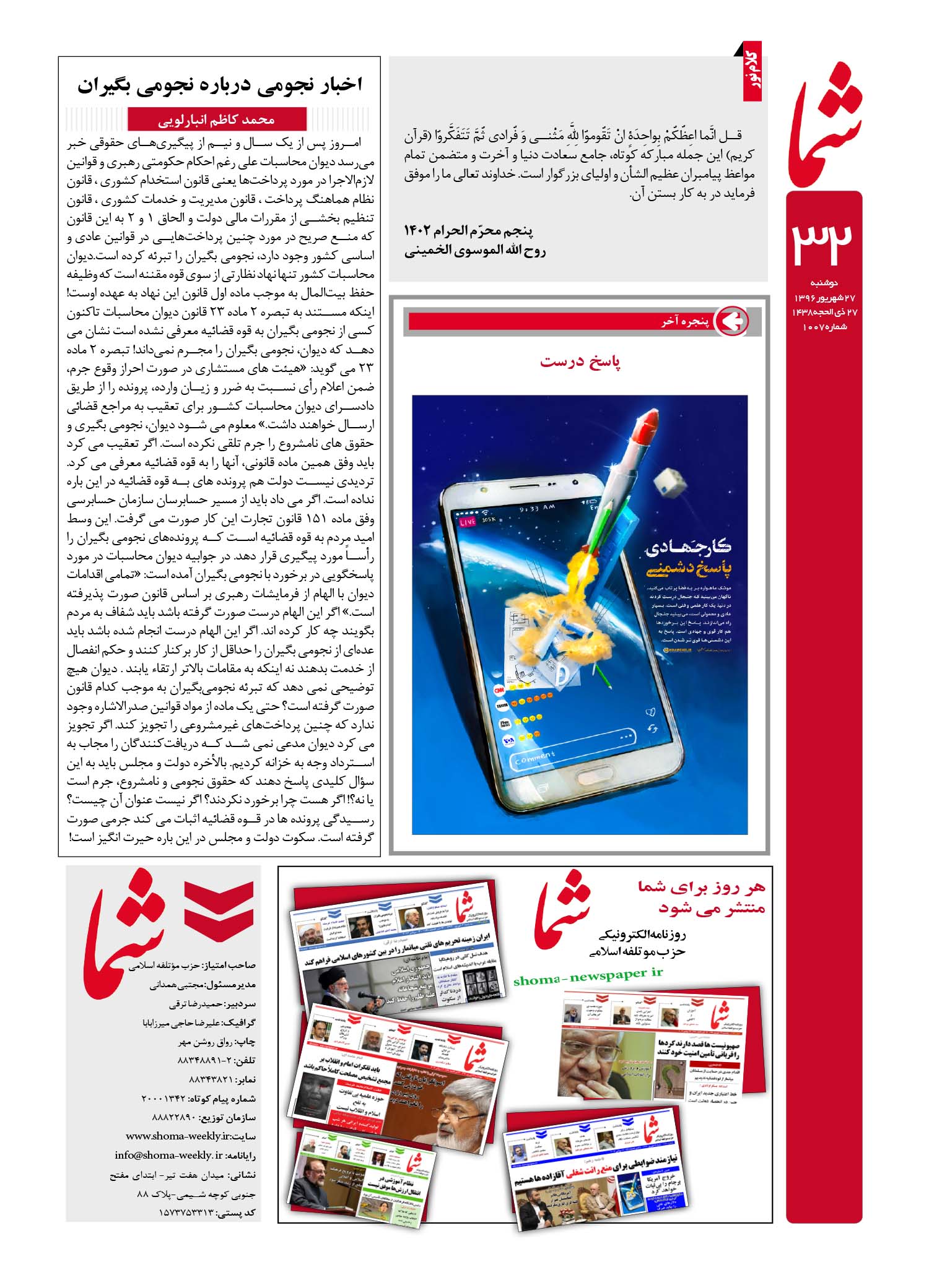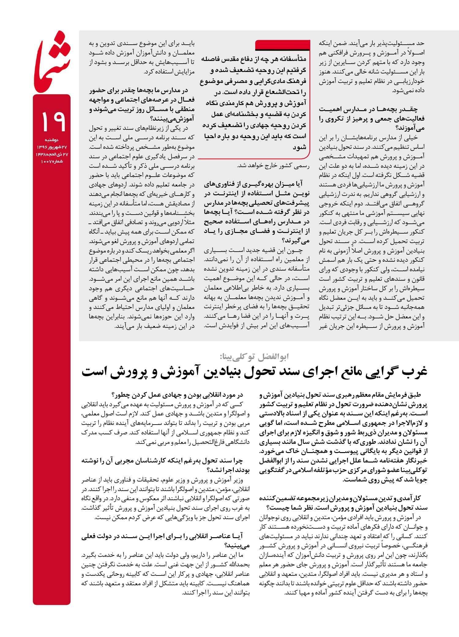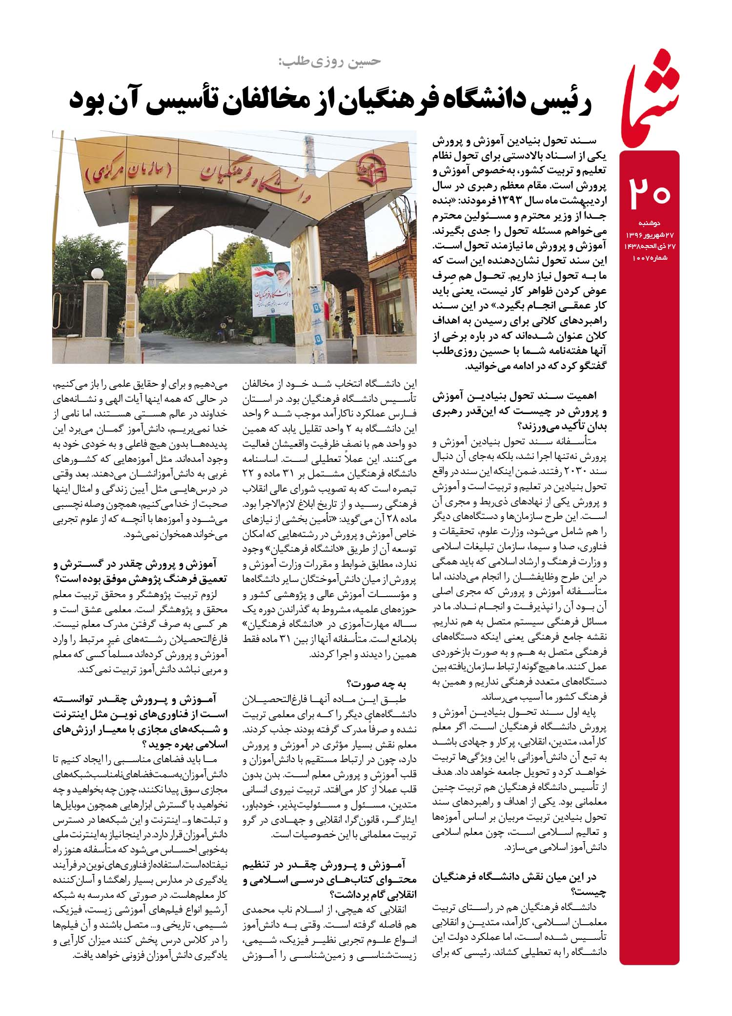 هفته نامه شما – شماره ۱۰۰۷