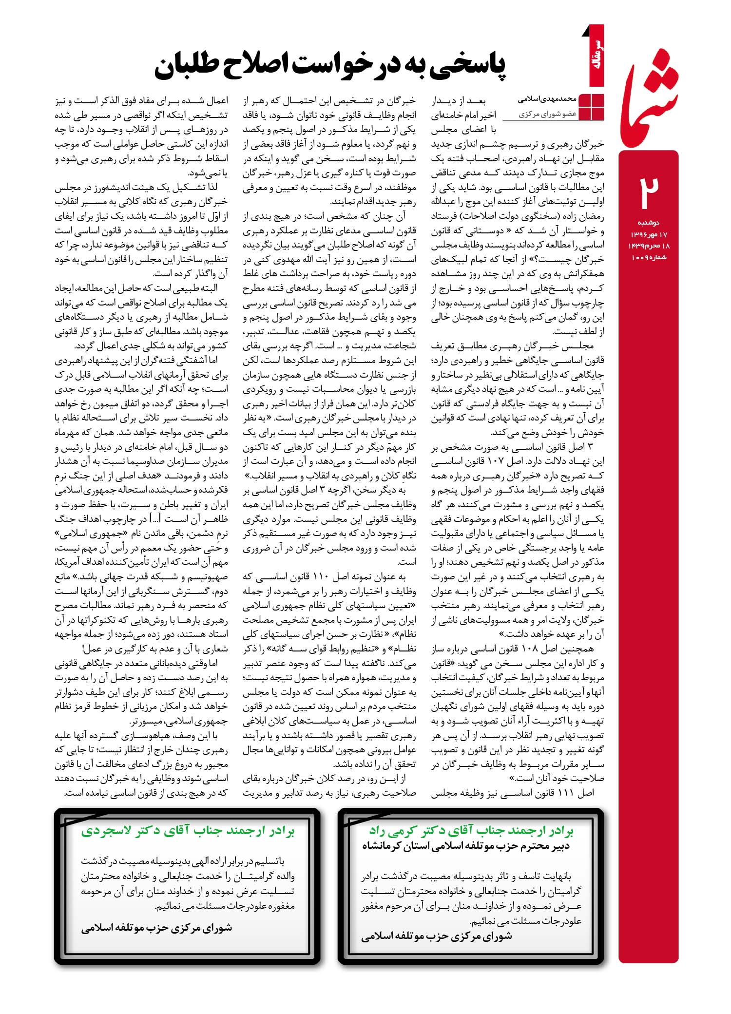 هفته نامه شما – شماره ۱۰۰۹