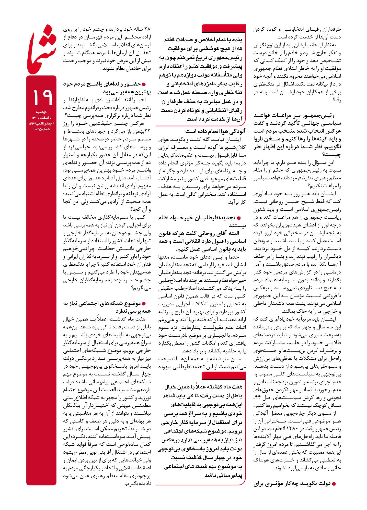 هفته نامه شما – شماره ۱۰۲۵