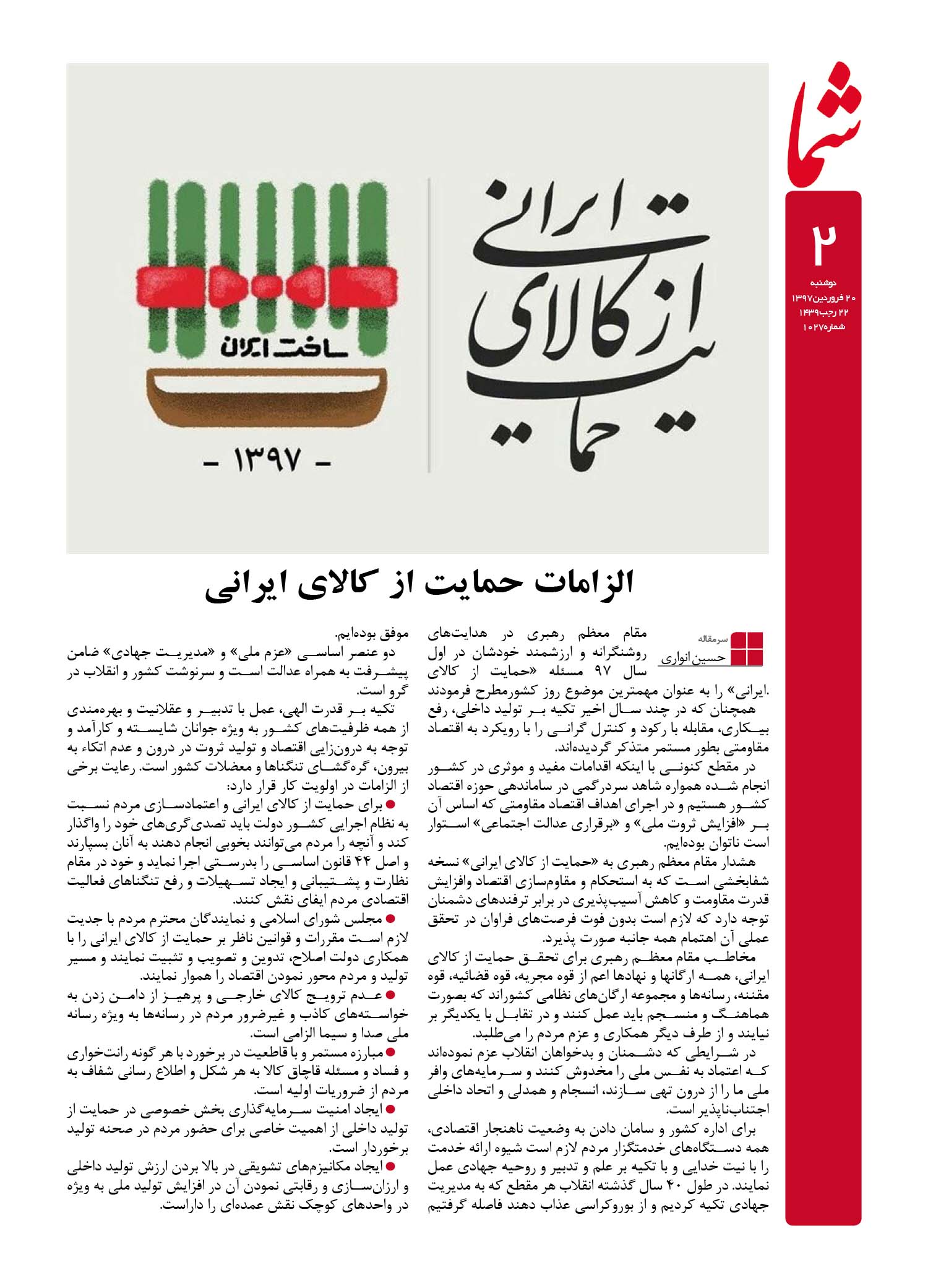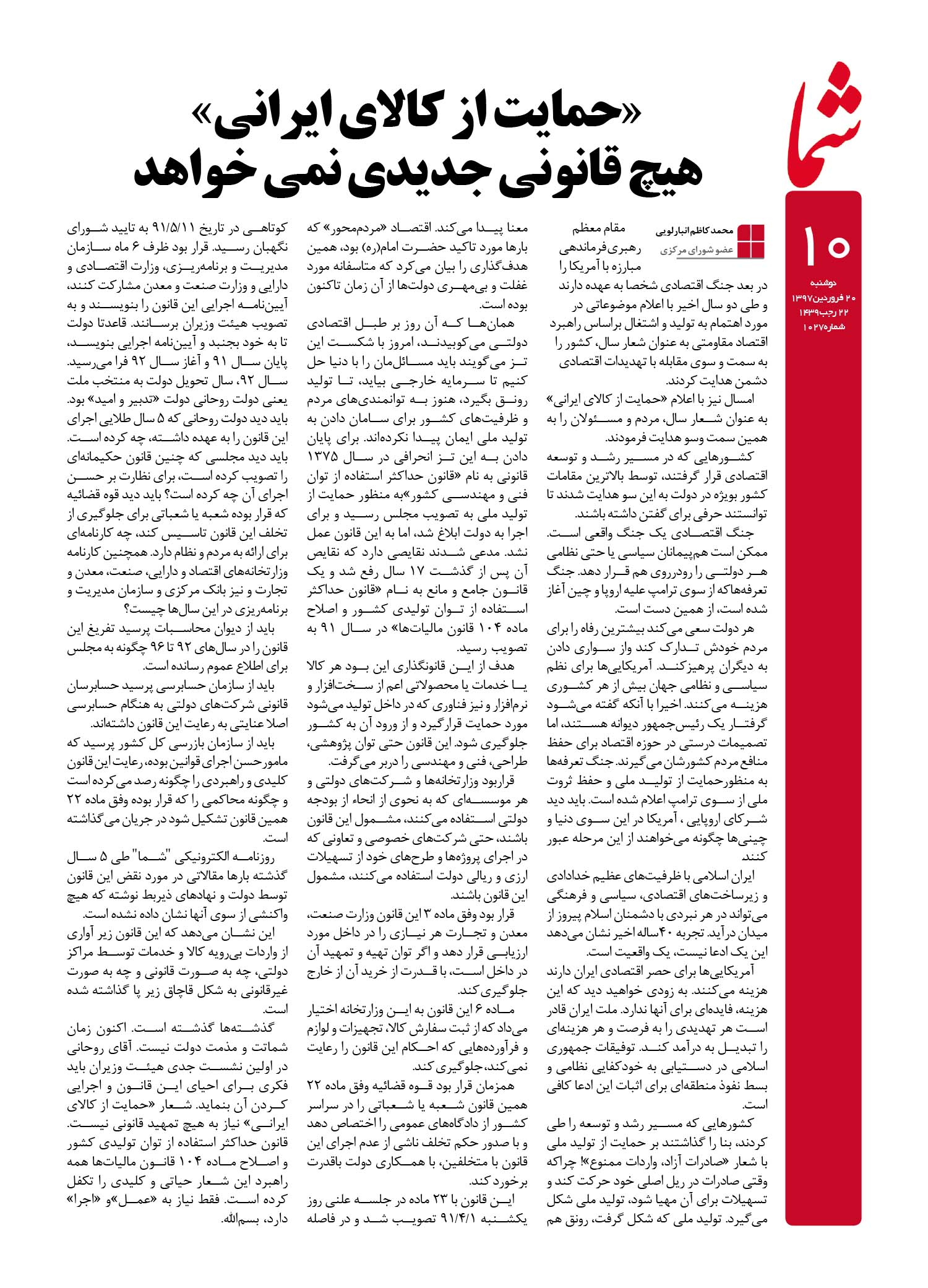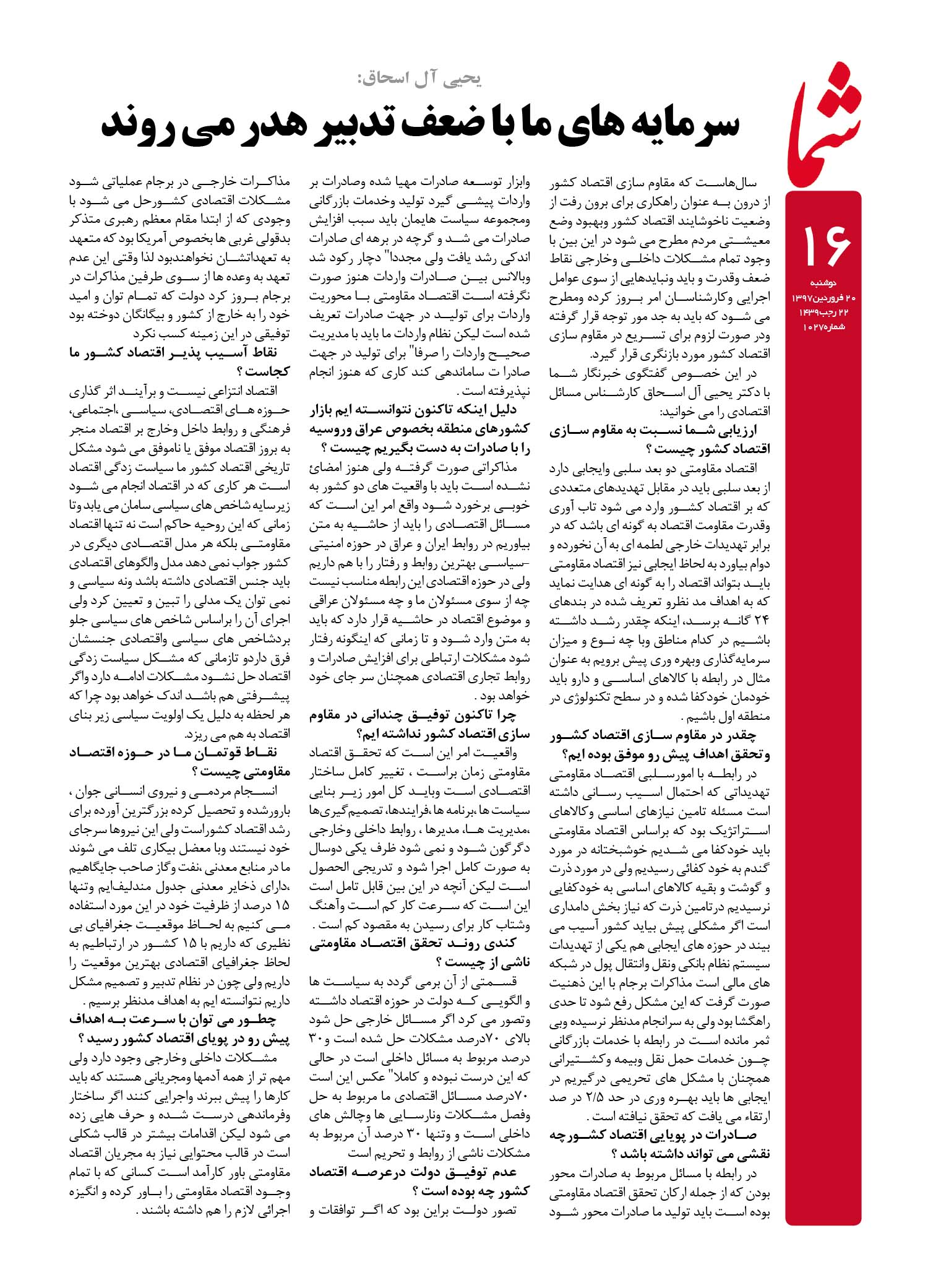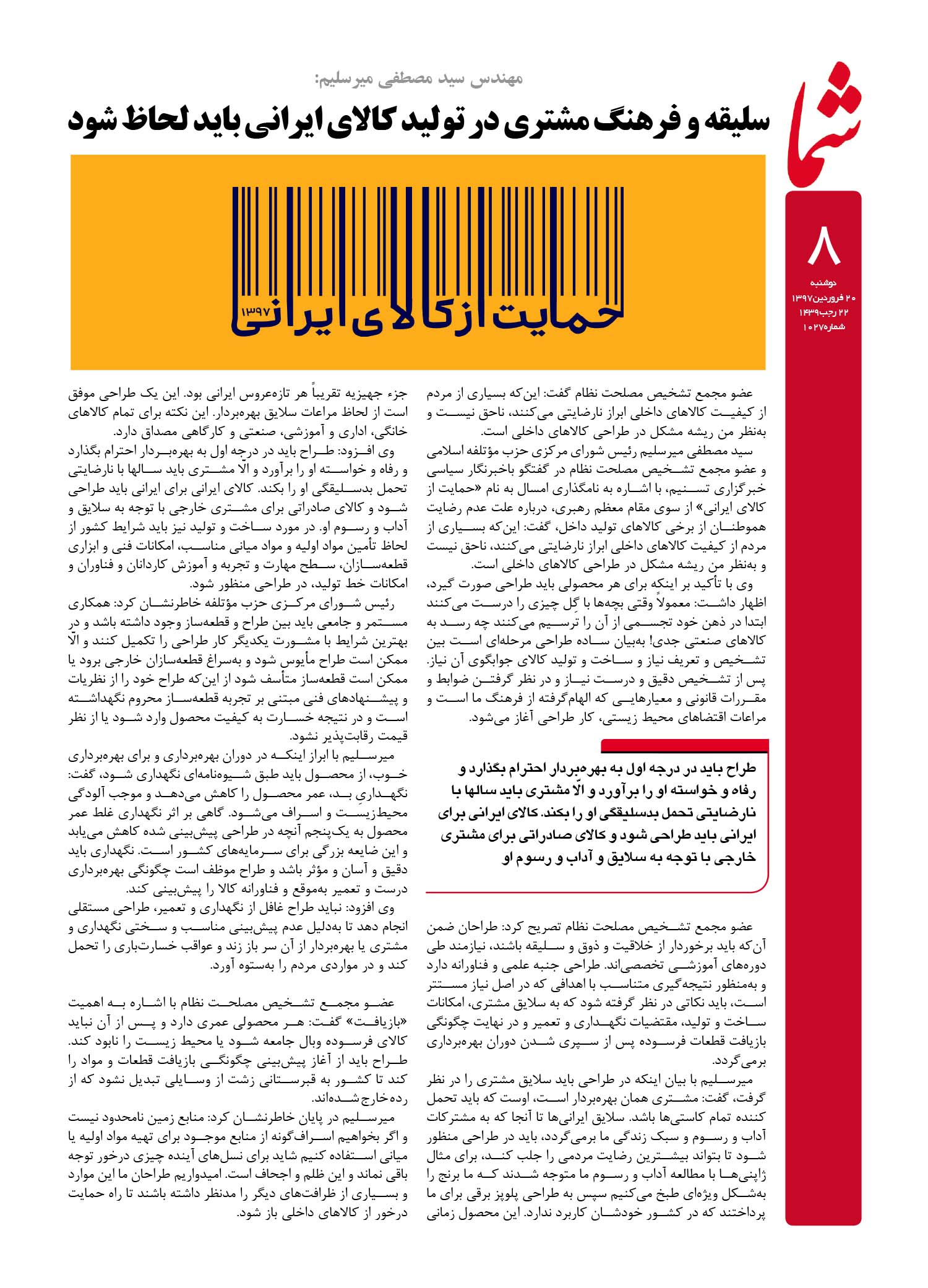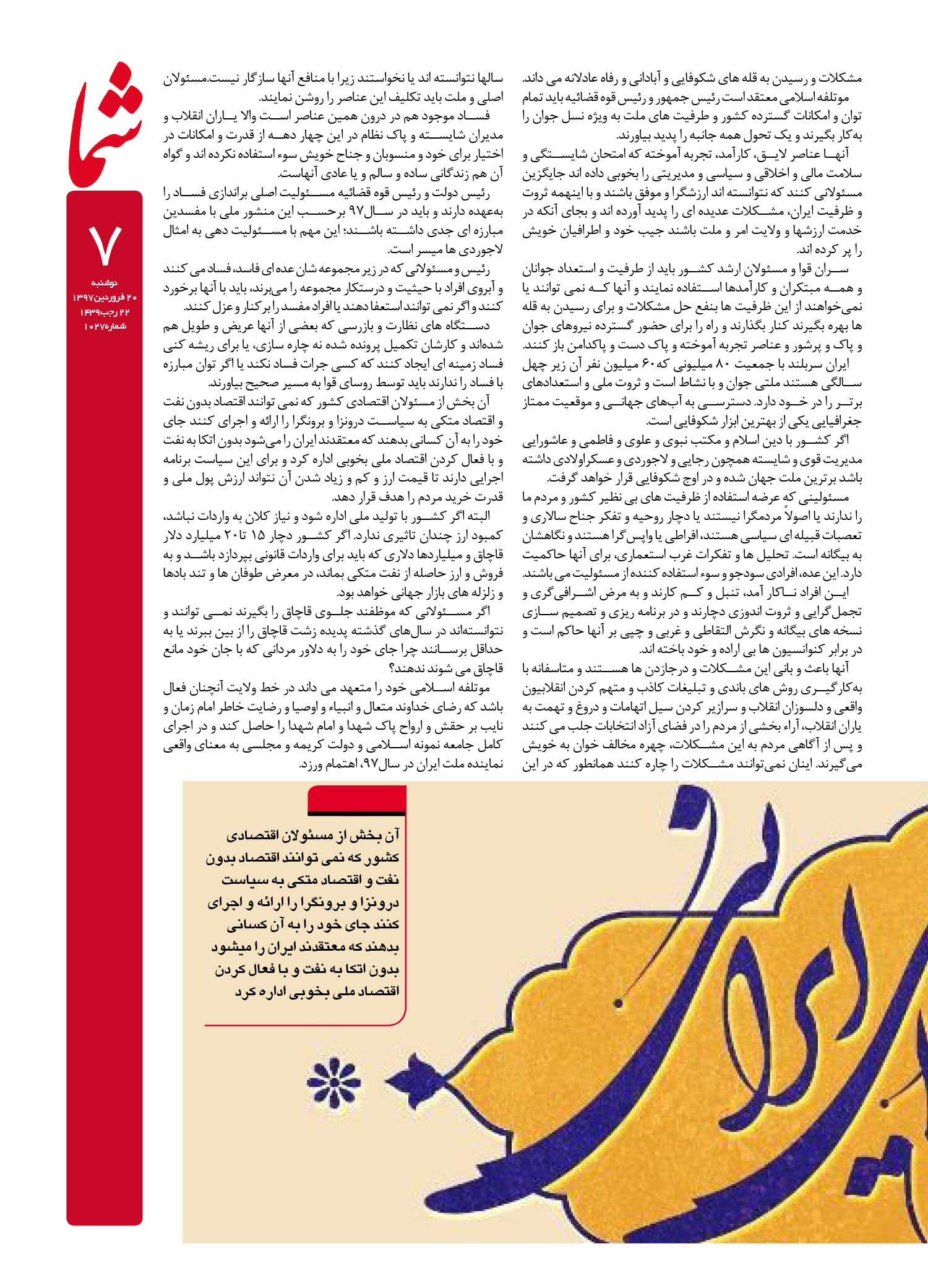هفته نامه شما – شماره ۱۰۲۷