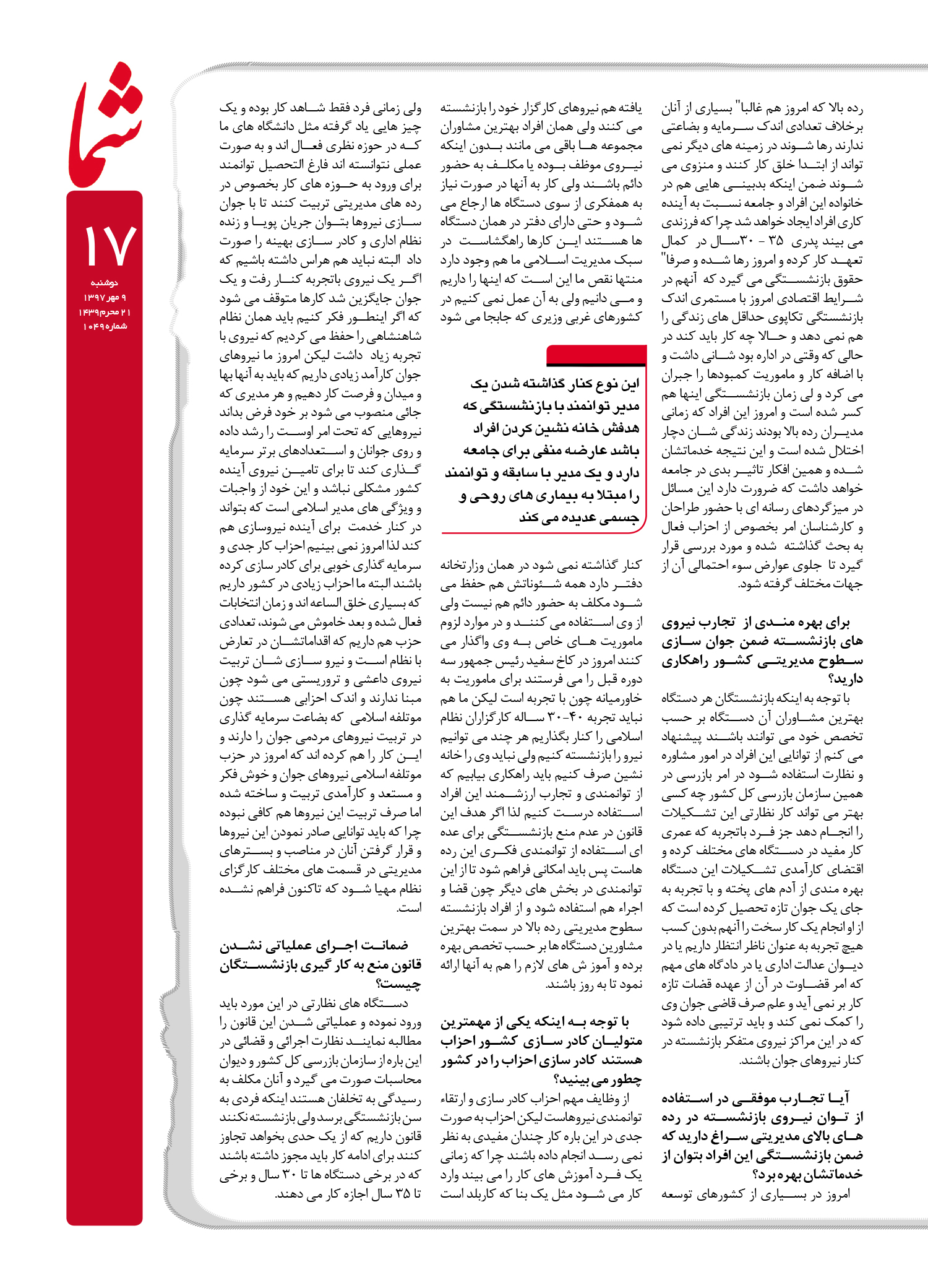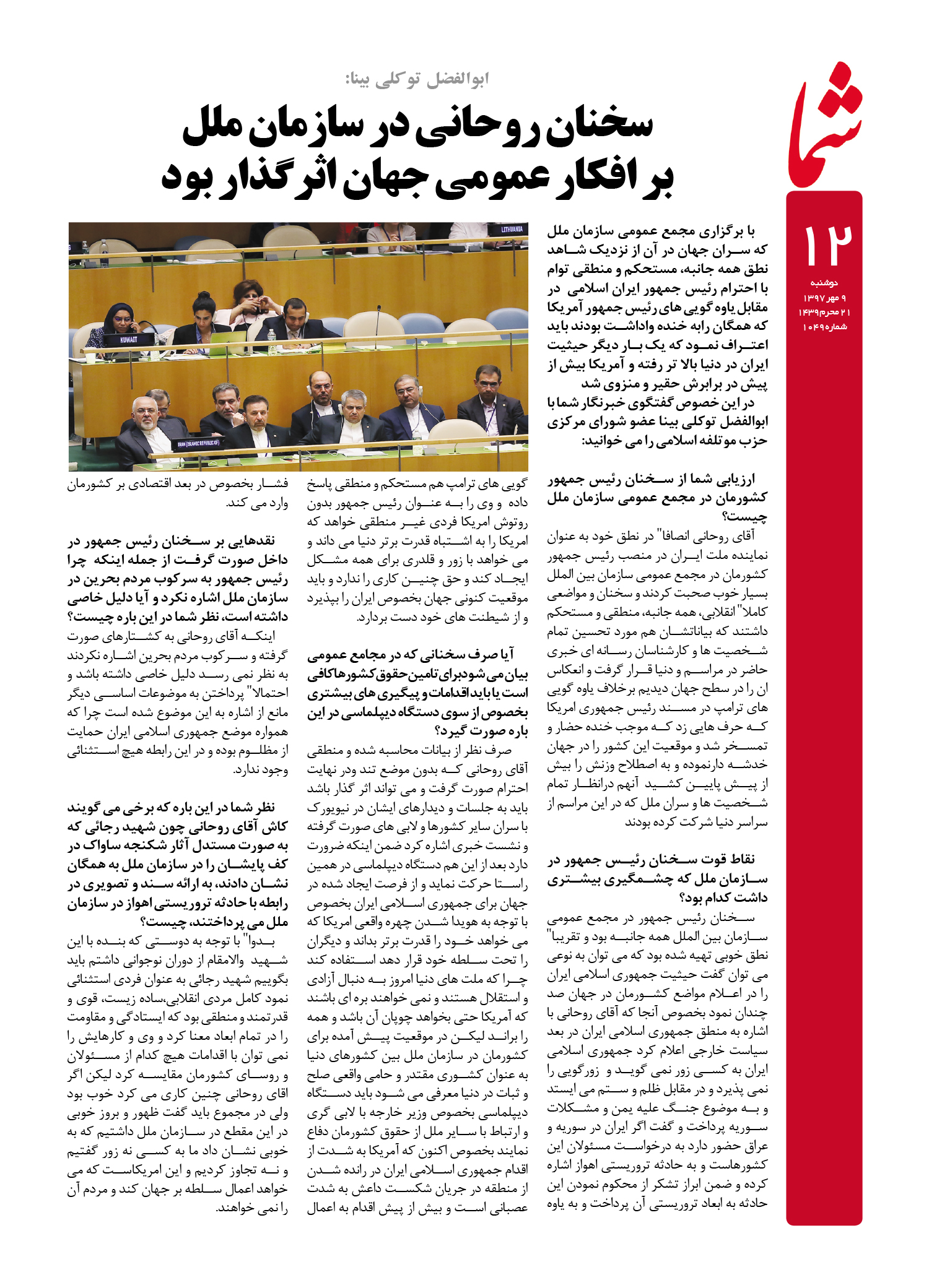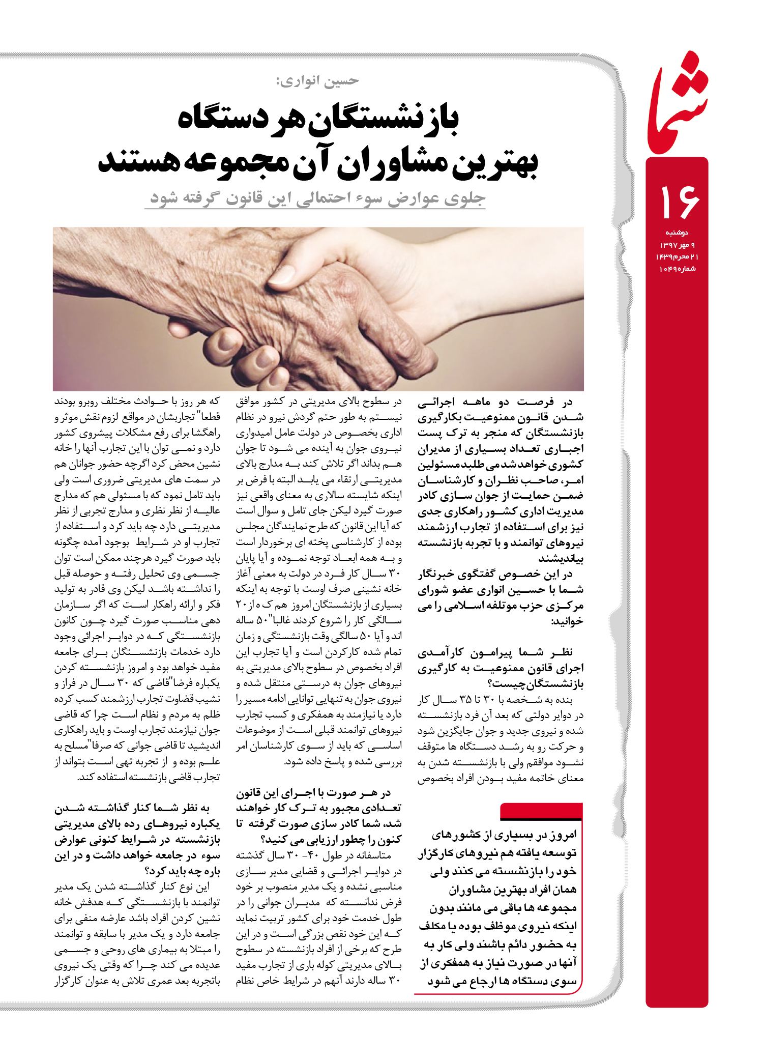 هفته نامه شما – شماره ۱۰۴۹
