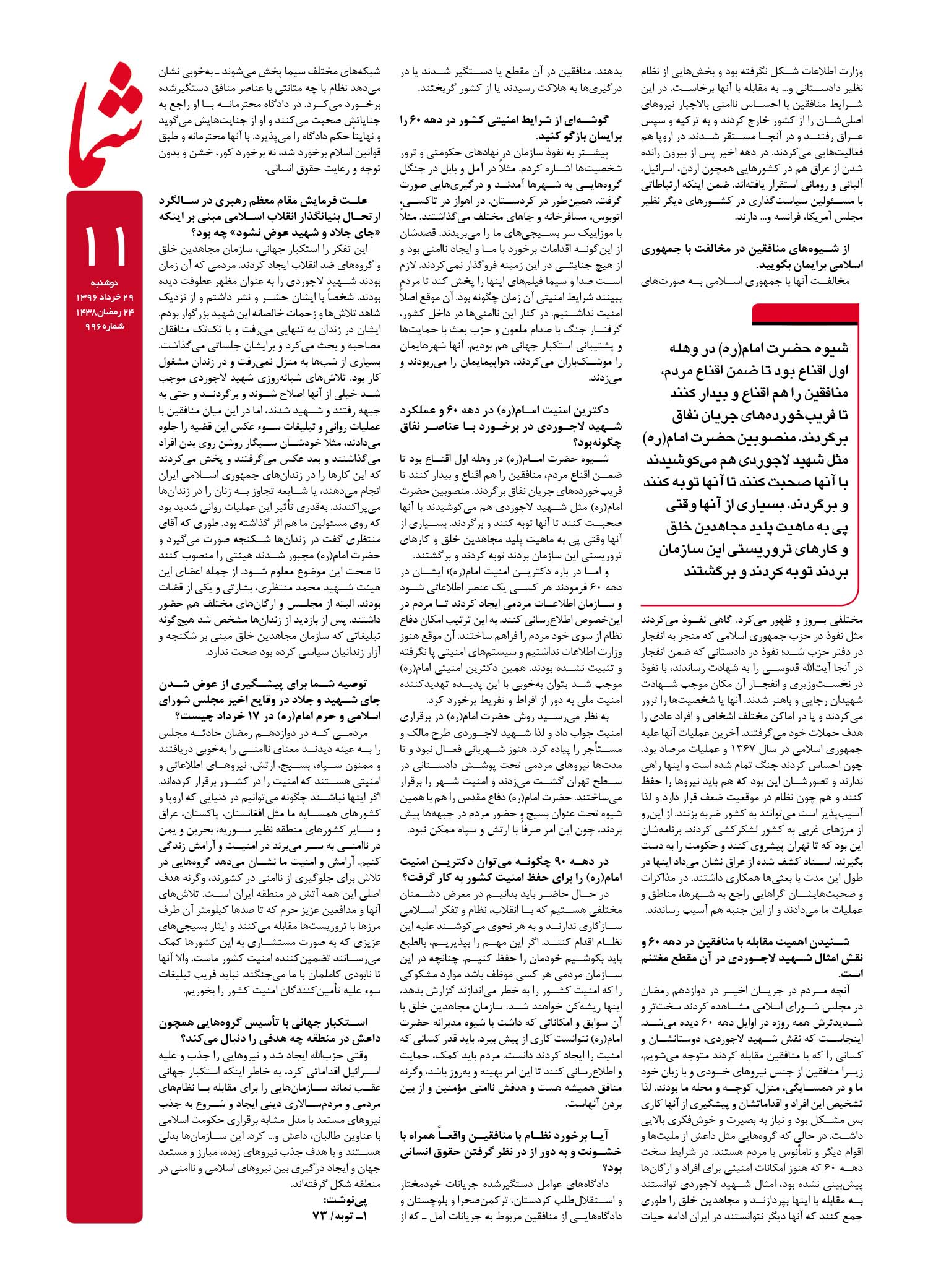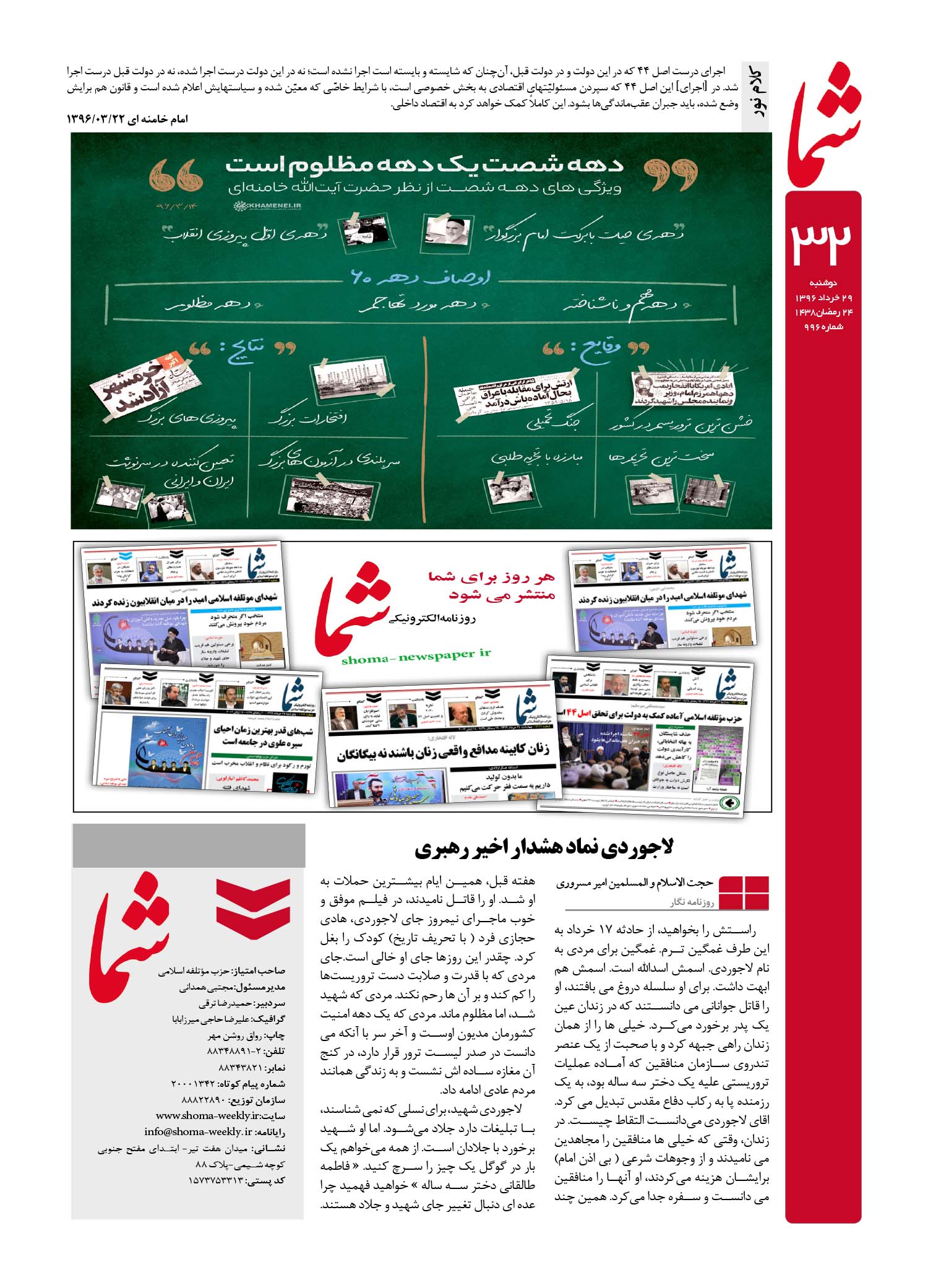 هفته نامه شما – شماره ۹۹۶