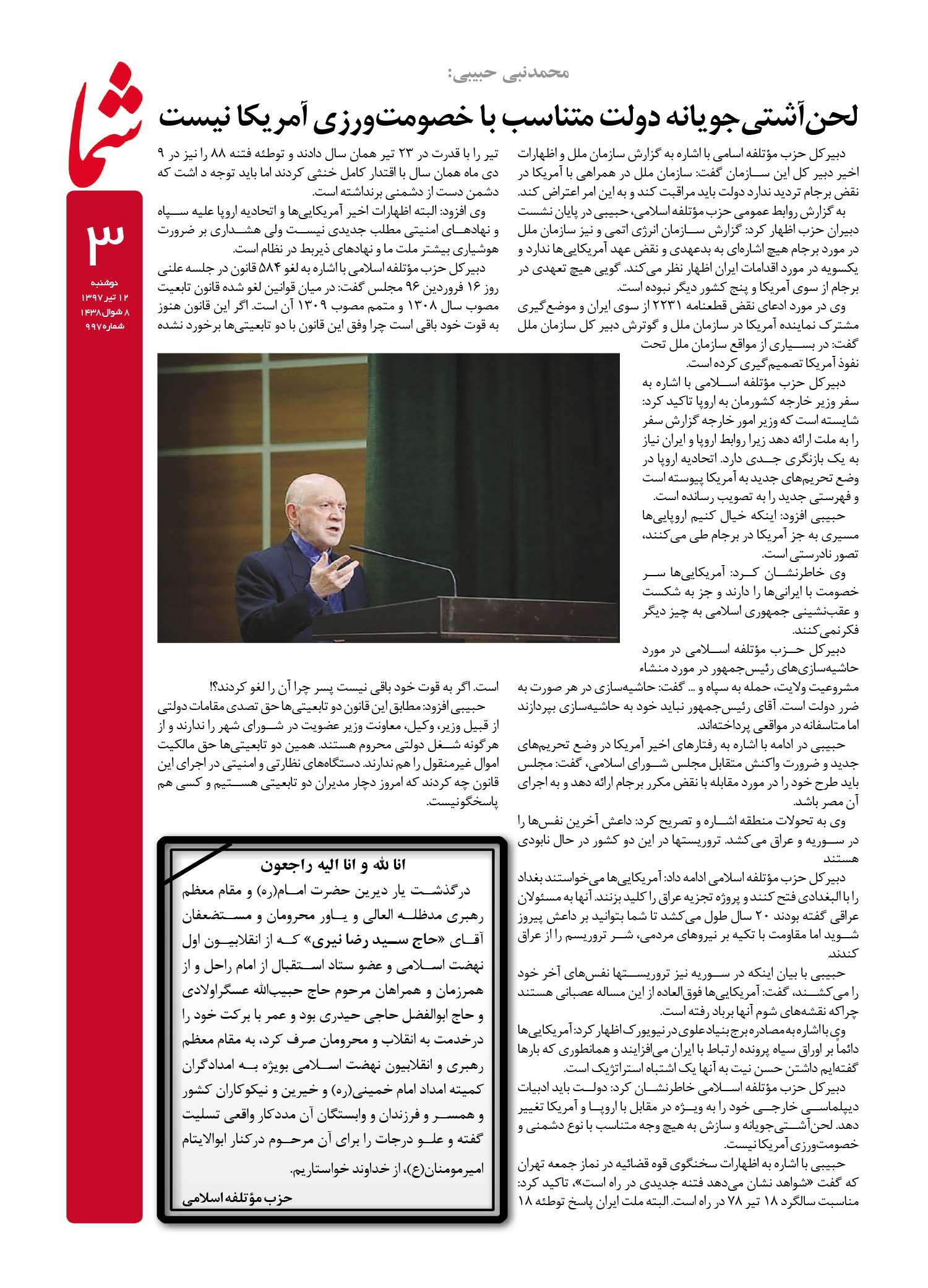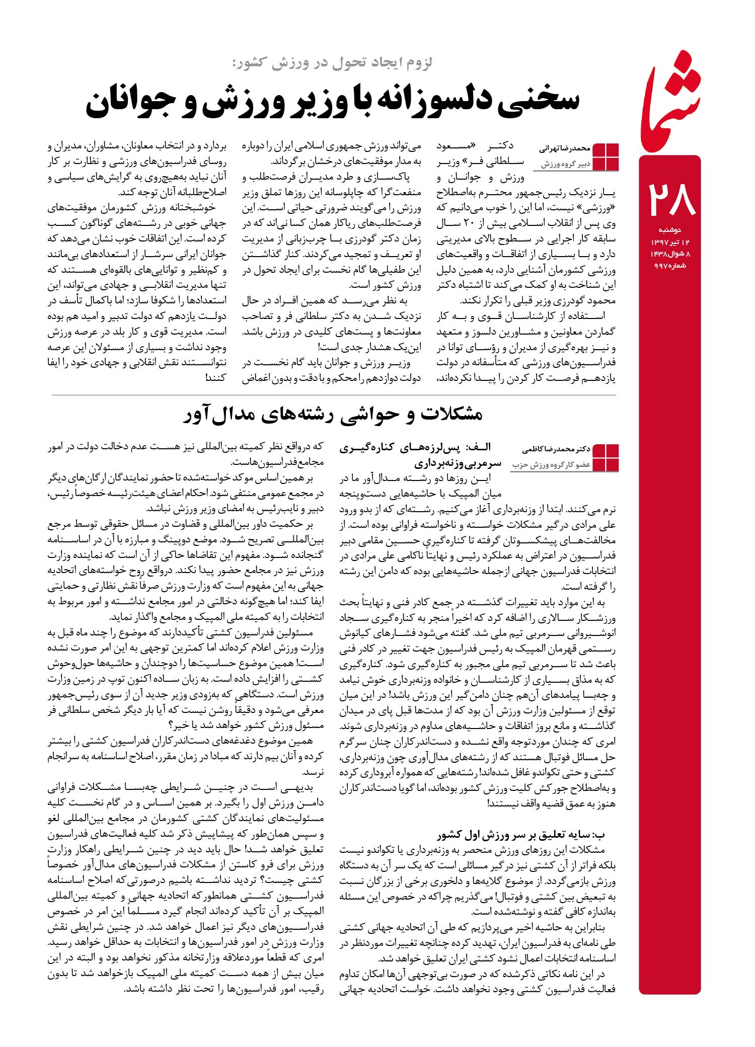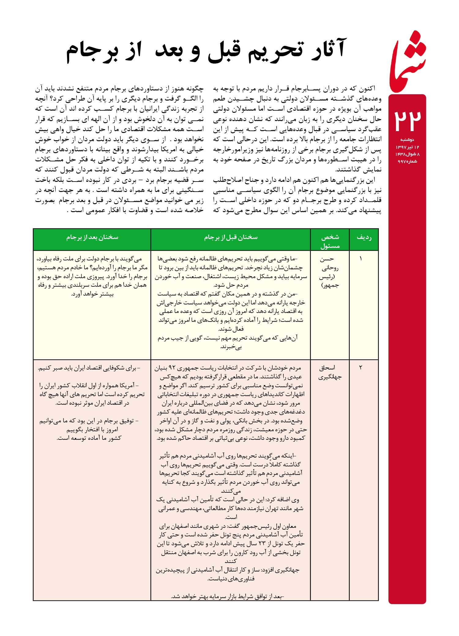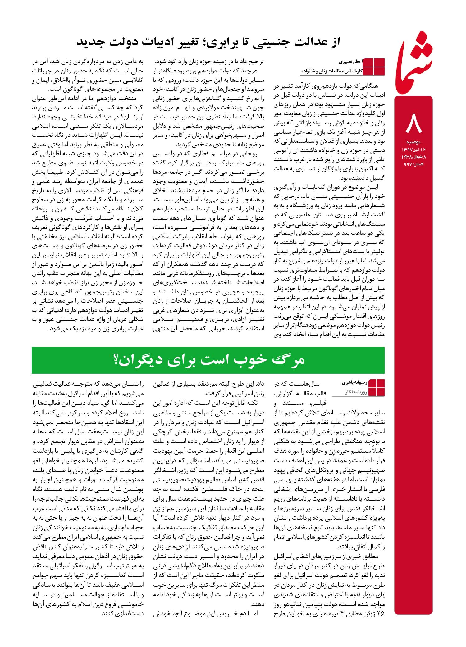 هفته نامه شما – شماره ۹۹۷