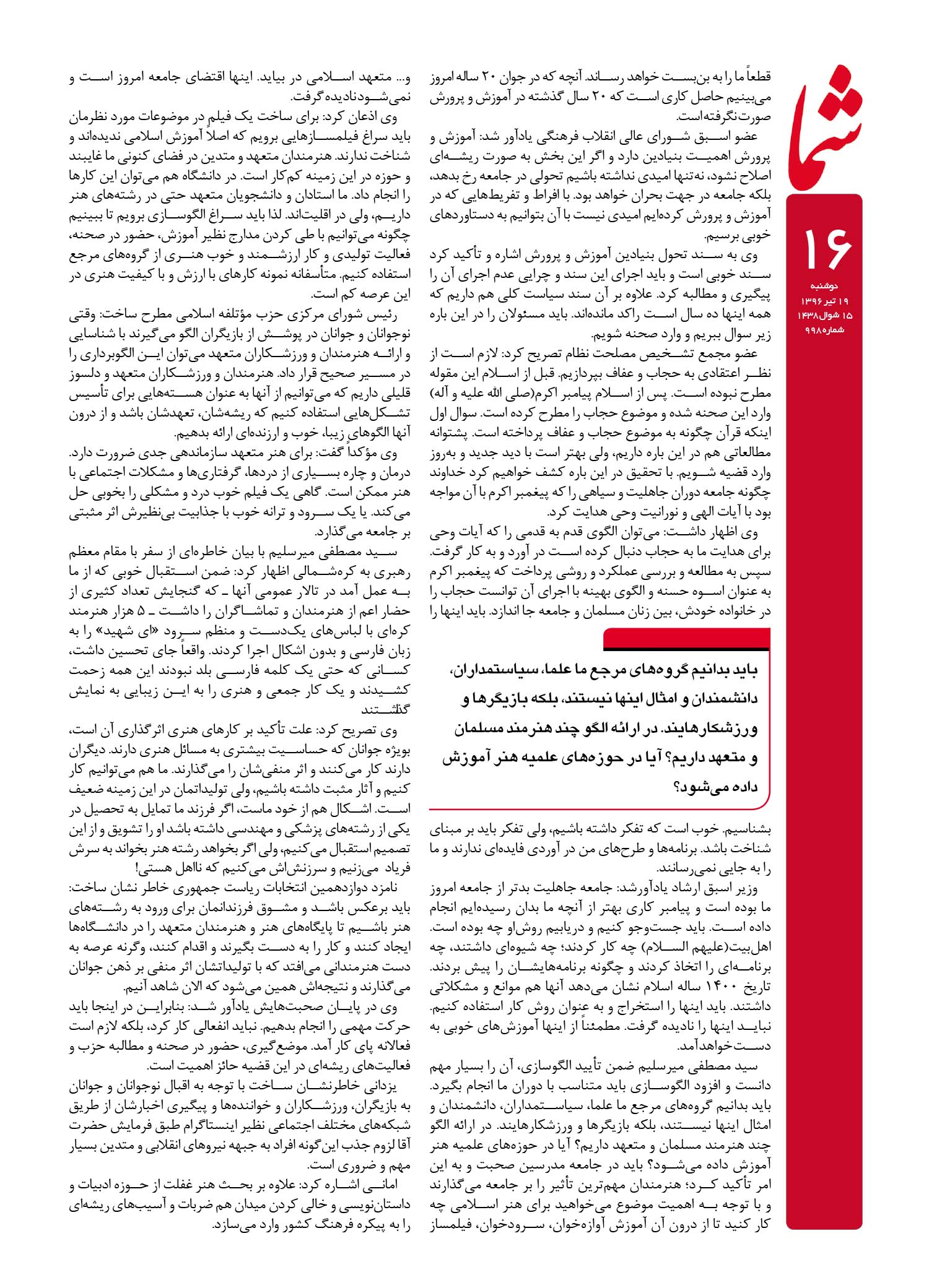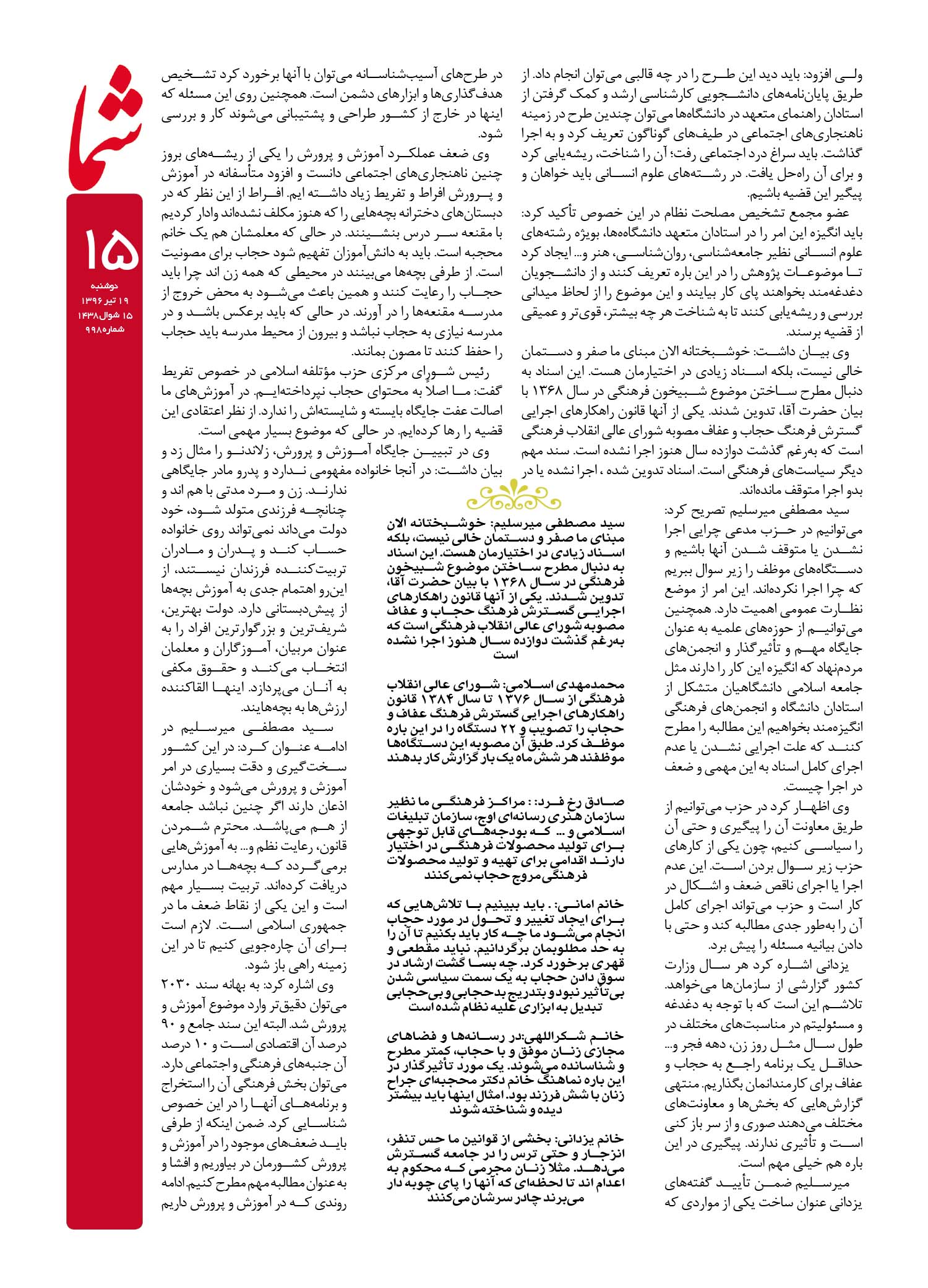 هفته نامه شما – شماره ۹۹۸