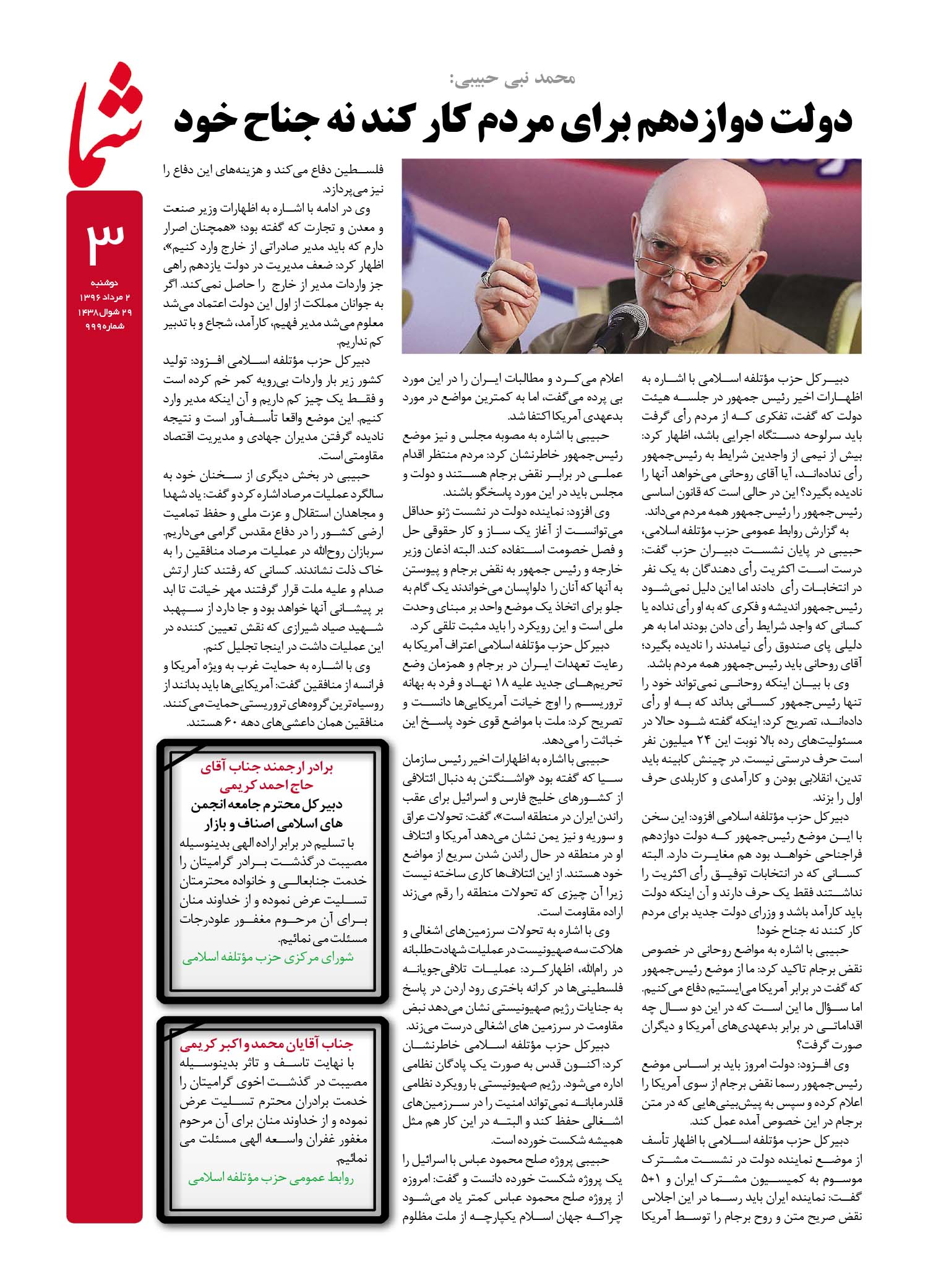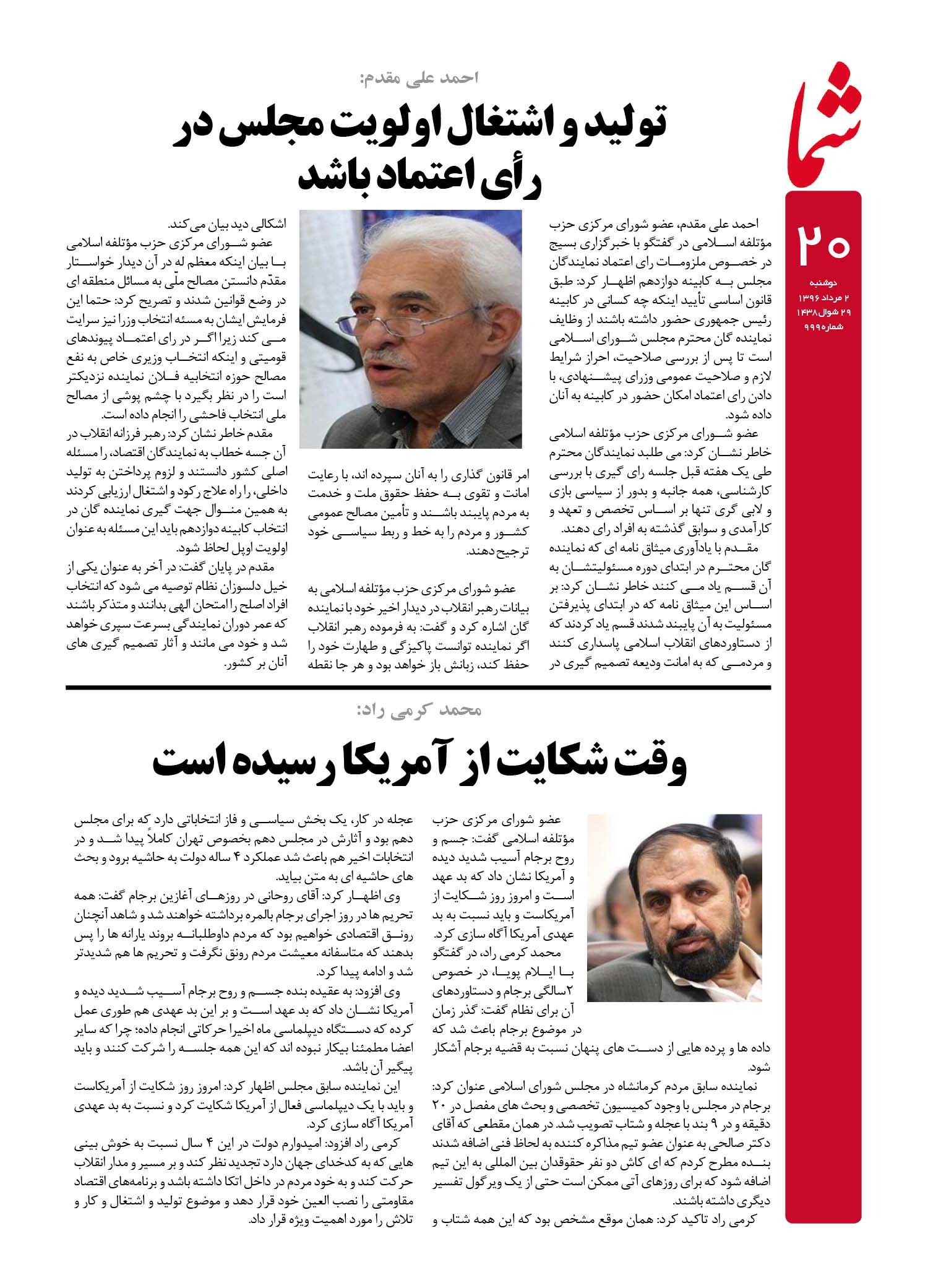 هفته نامه شما – شماره ۹۹۹