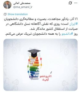 ۱۶ آذر، یادآور مجاهدت، بصیرت و مطالبهگری دانشجویان ایران است؛ روزی که نقش آگاهانه نسل دانشگاهی در صیانت از استقلال کشور ماندگار شد.